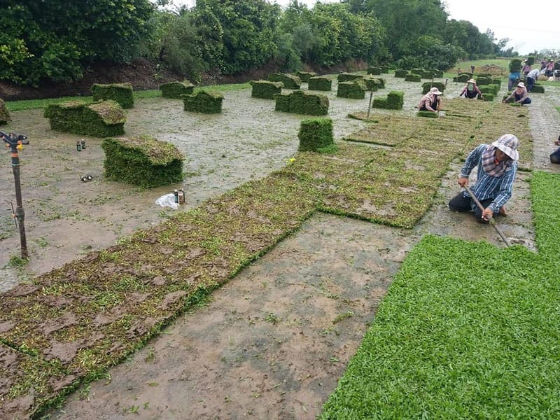 รัปปูสนามหญ้าราคาถูกจากไร่หญ้า วนิดา พร้อมด้วยทีมงานปูหญ้าจาก
